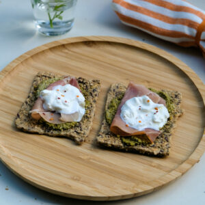 Ik ben zelf liefhebber van vegan spreads, omdat het smeuïge zo lekker combineert met de krokante van onze crackers. Ideaal bij de lunch. Bij deze doperwtenspread is er bovendien de vreugde van de frisgroene kleur waardoor ik mij al gezond voel voordat ik mijn eerste hap neem.